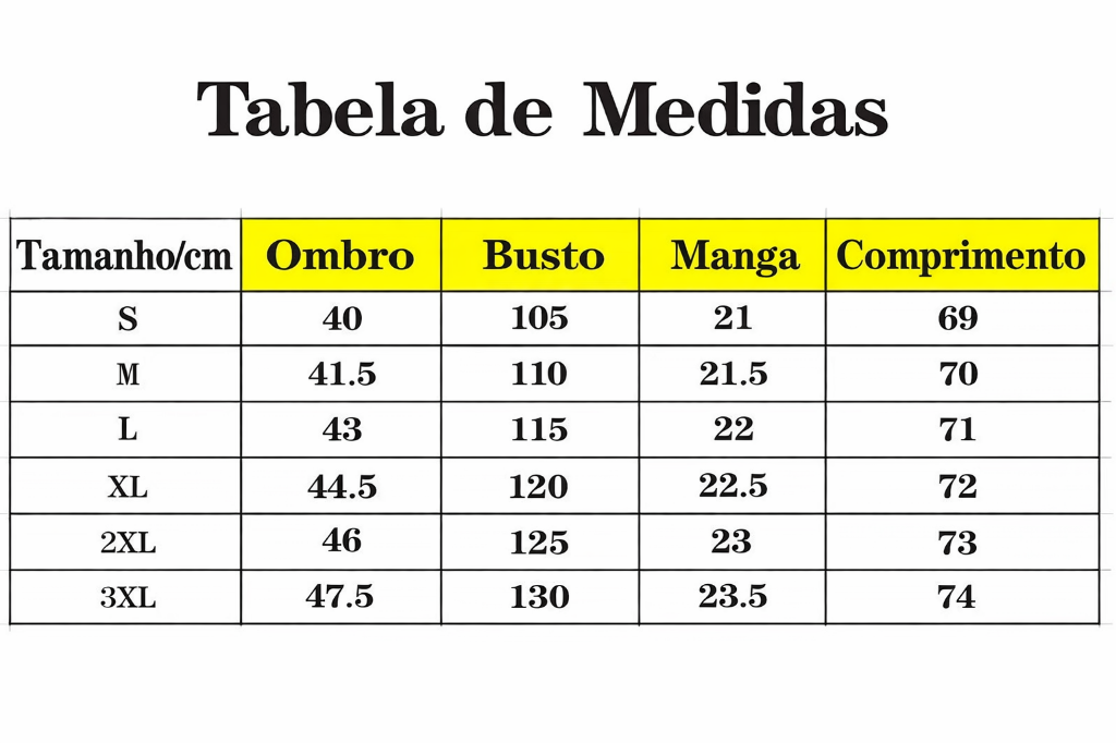 -Tamanhos: S, M, L, XL, XXL e XXXL
